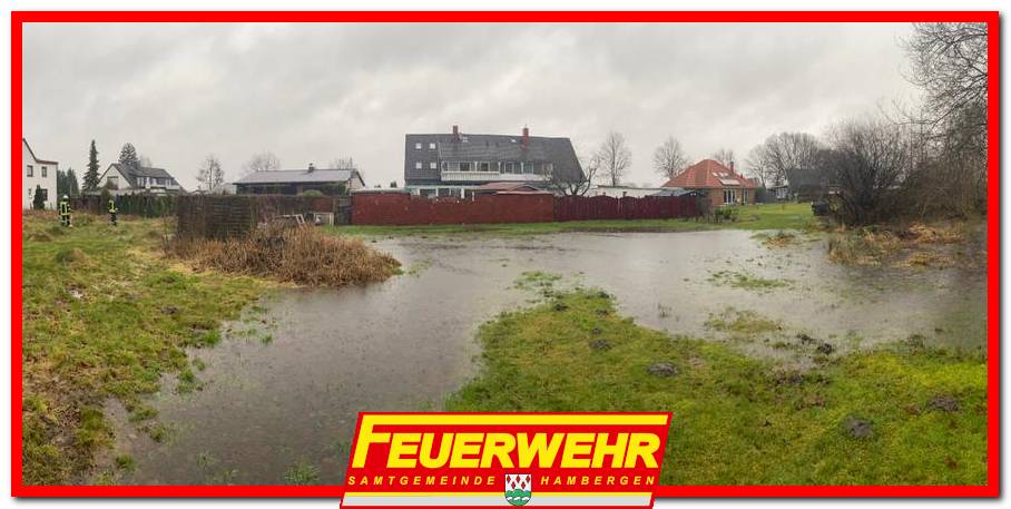 Aufgrund ergiebiger Regenfälle floss Wasser von einer überschwemmten Wiese in den Kellereingang eines Wohngebäudes. Um ein weiteres Eindringen des Wassers zu verhindern, setzten die Einsatzkräfte zunächst eine elektrische Tauchpumpe ein. Mithilfe einer im Garten des Nachbargrundstücks aufgebauten Tragkraftspritze wurde außerdem überschüssiges Wasser in das Abwassersystem gepumpt.